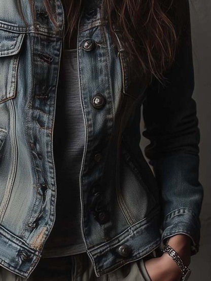 Washed And Faded Utility Denim Jacket With Epaulettes