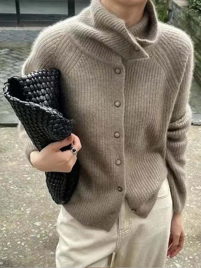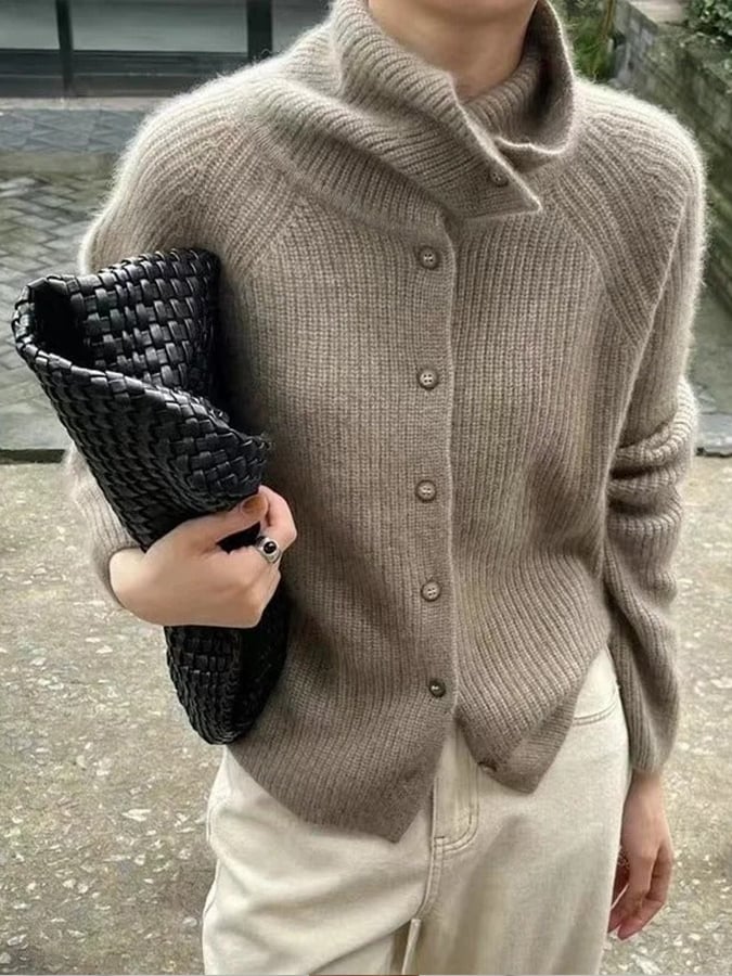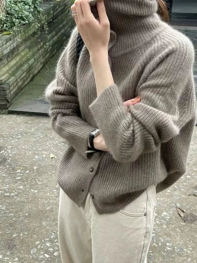 Women'S Autumn And Winter Casual Solid Color Pile Collar Long Sleeve Sweater