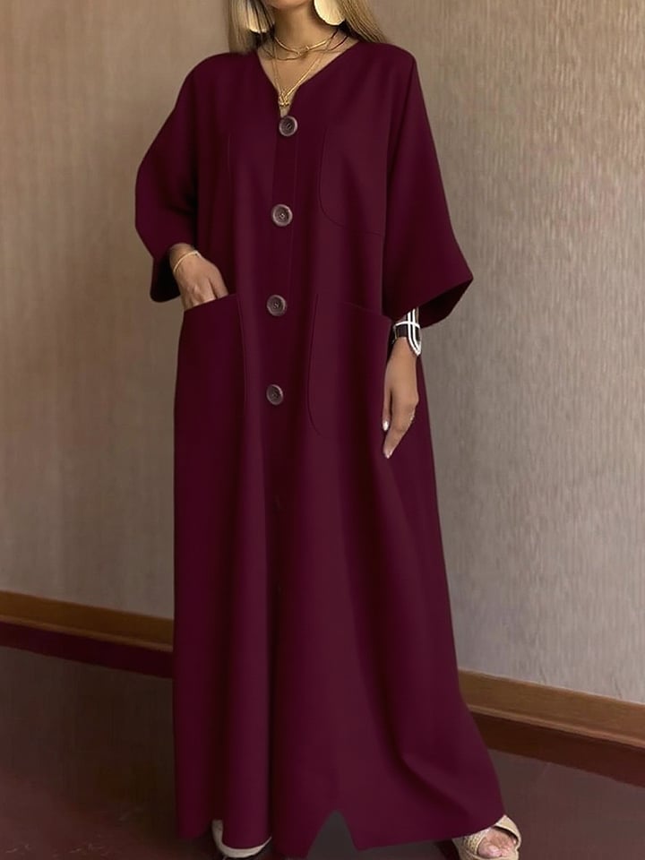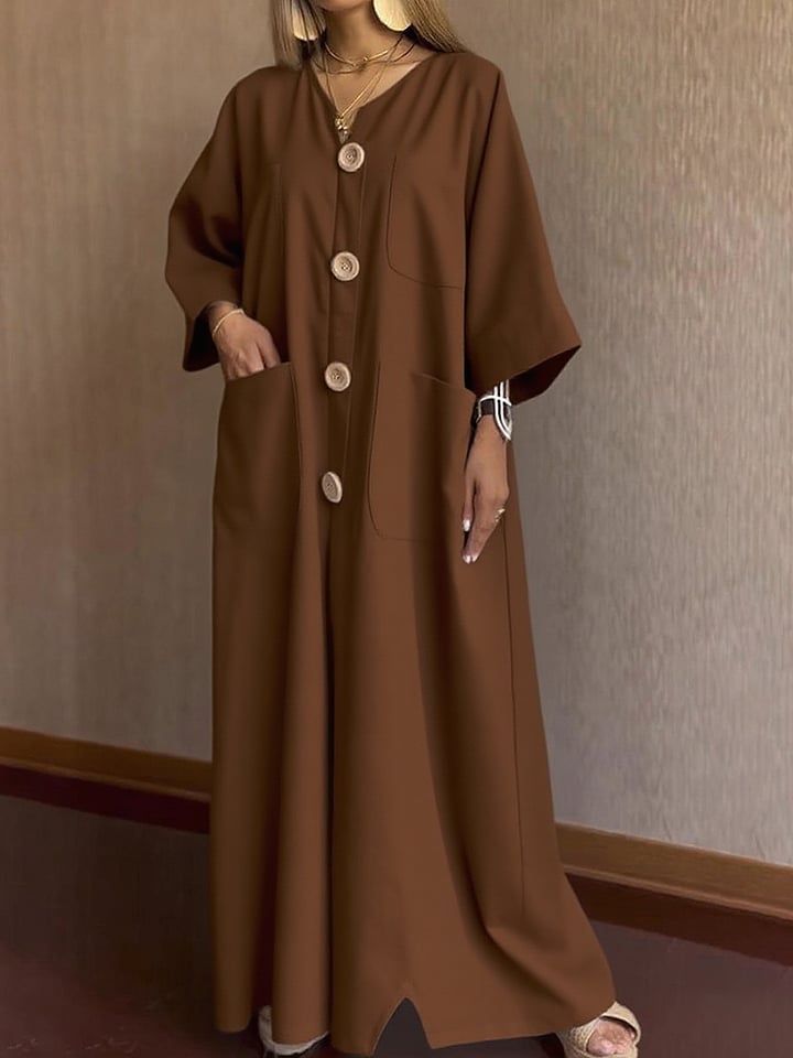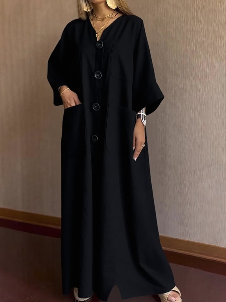 Women's Casual Loose Pocket Button Cotton Linen Dress