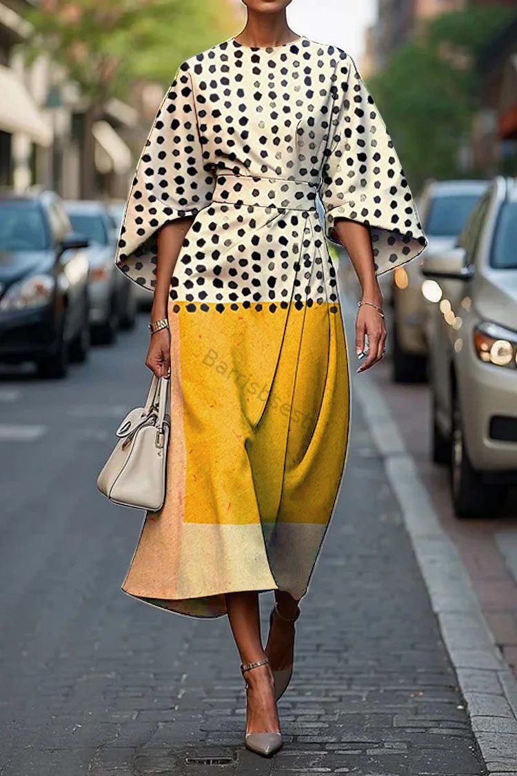 Women's Elegant Abstract Art Print Midi Dress