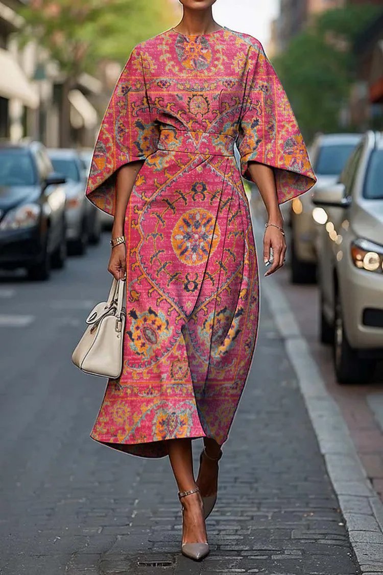 Women's Elegant Vintage Ethnic Floral Print Midi Dress