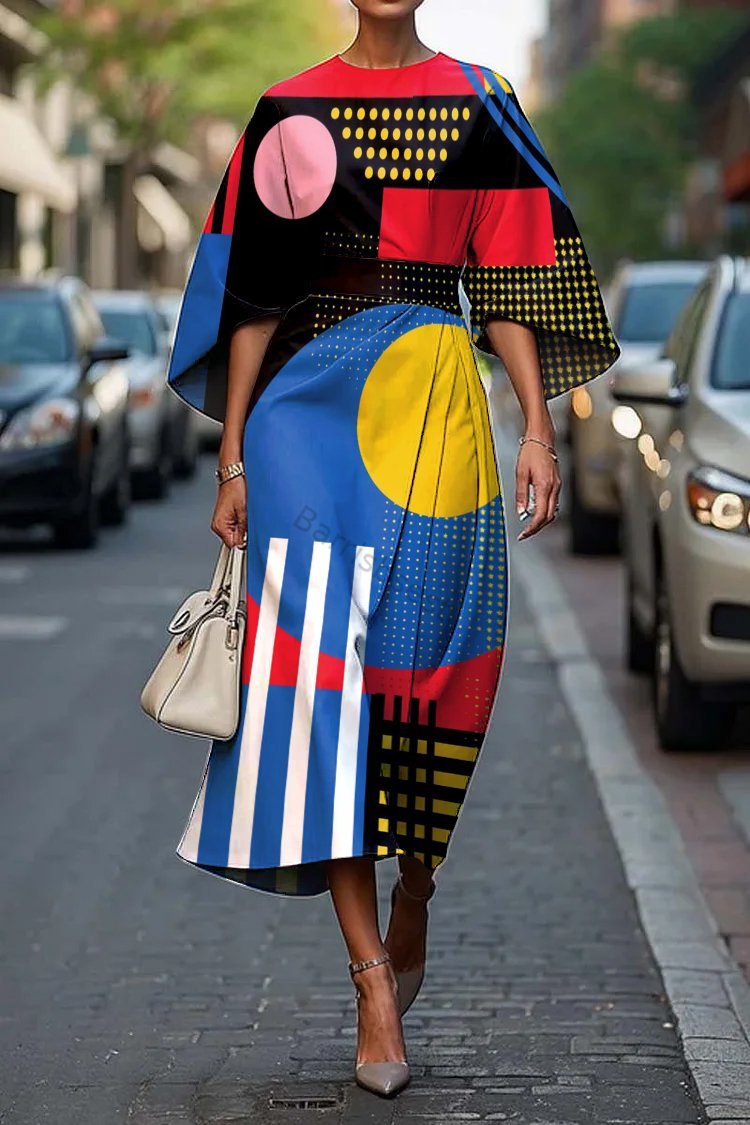 Women's Elegant Abstract Art Print Midi Dress