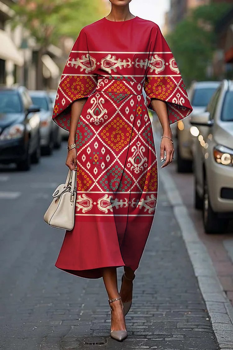 Women's Elegant Vintage Ethnic Print Midi Dress