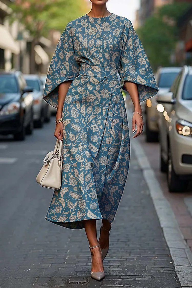 Women's Elegant Vintage Floral Print Midi Dress