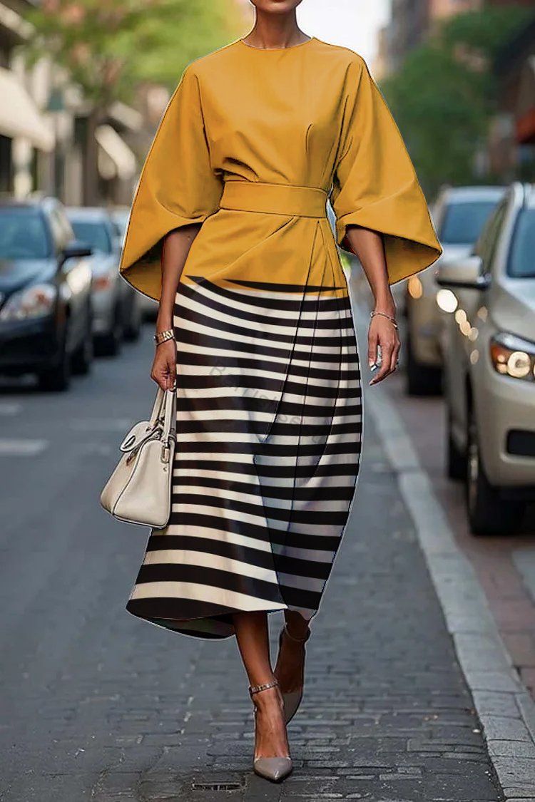 Women's Elegant Geometric Abstract Art Print Midi Dress