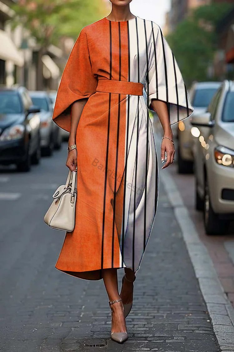 Women's Elegant Geometric Abstract Art Print Midi Dress