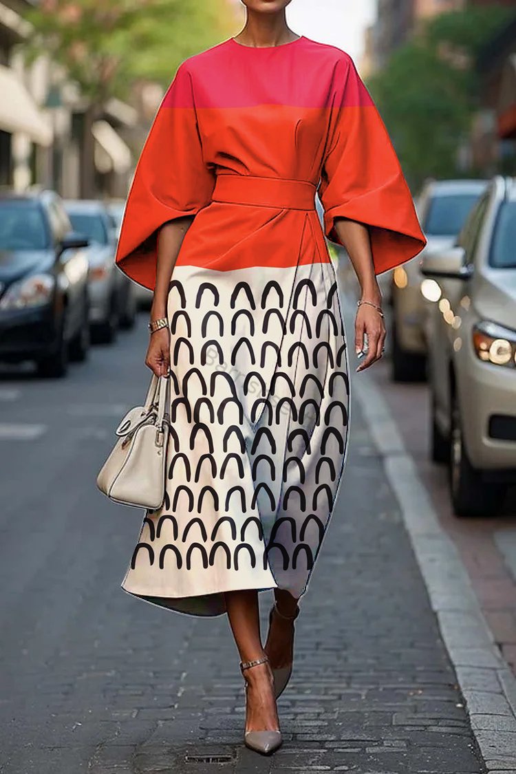 Women's Elegant Geometric Abstract Art Print Midi Dress