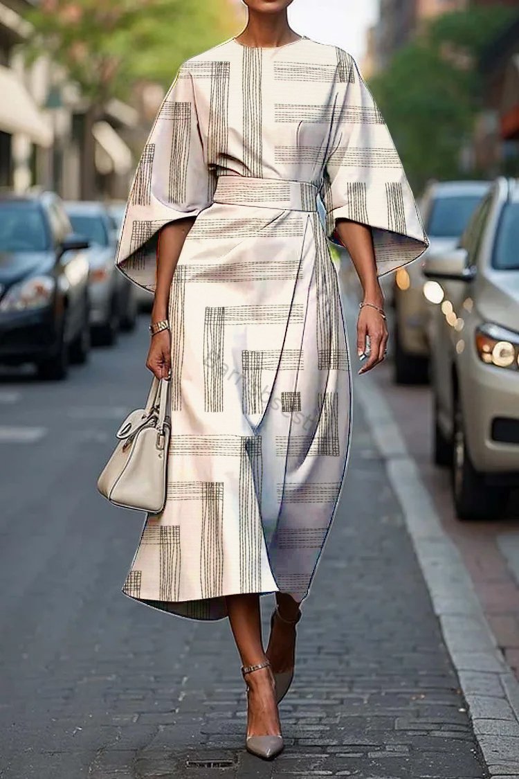 Women's Elegant Geometric Abstract Art Print Midi Dress