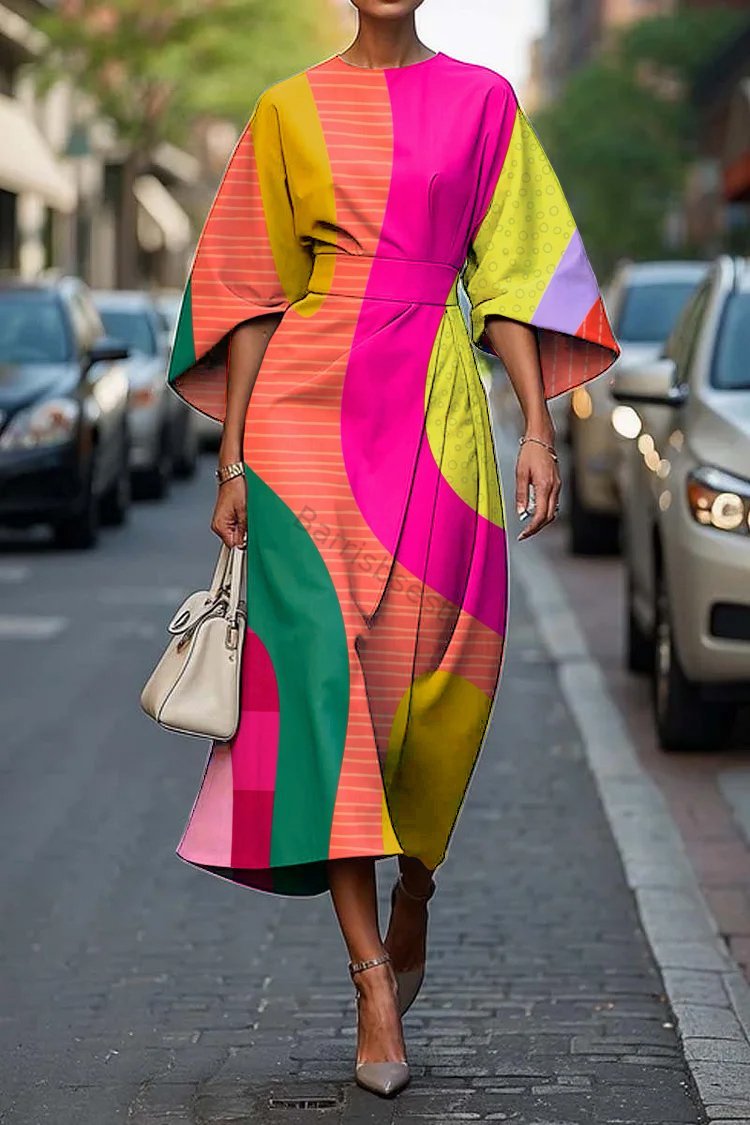 Women's Elegant Geometric Abstract Art Print Midi Dress