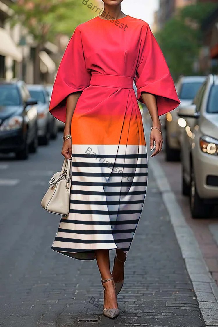 Women's Elegant Geometric Abstract Art Print Midi Dress