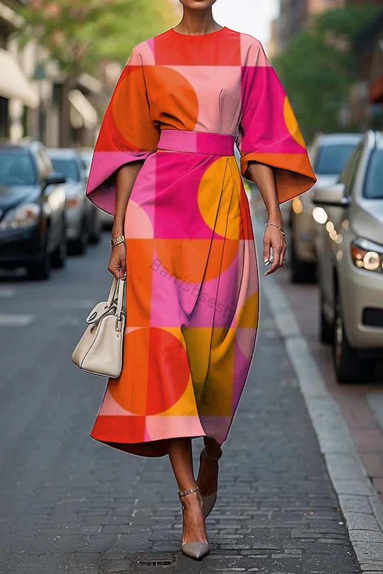 Women's Elegant Geometric Abstract Art Print Midi Dress
