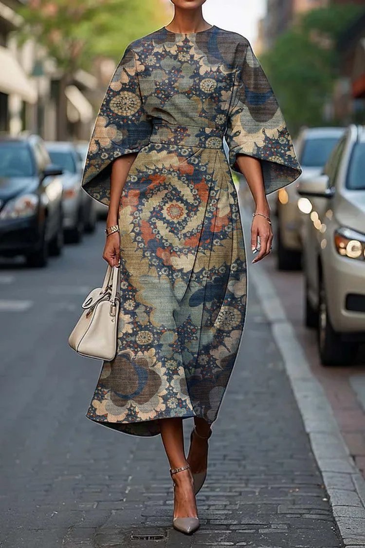 Women's Elegant Vintage Art Print Midi Dress