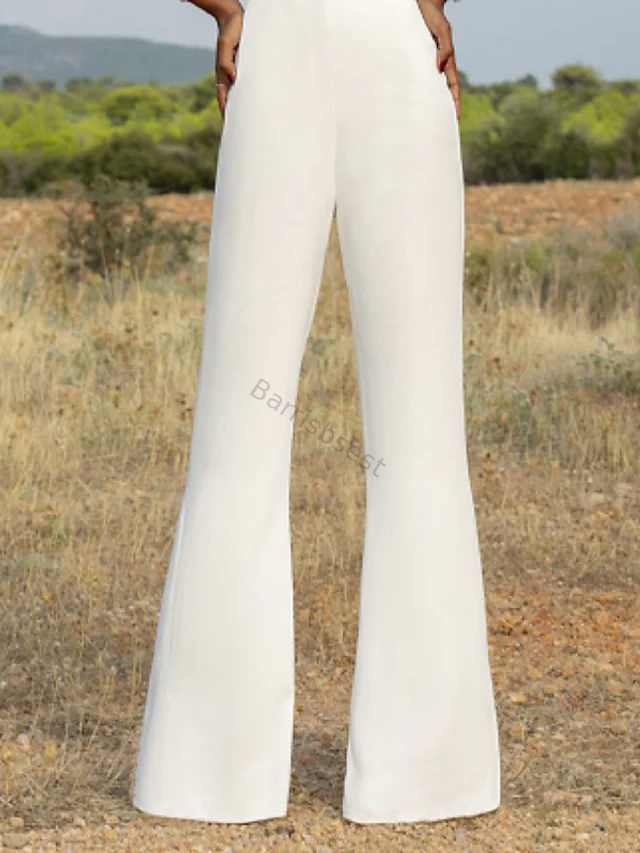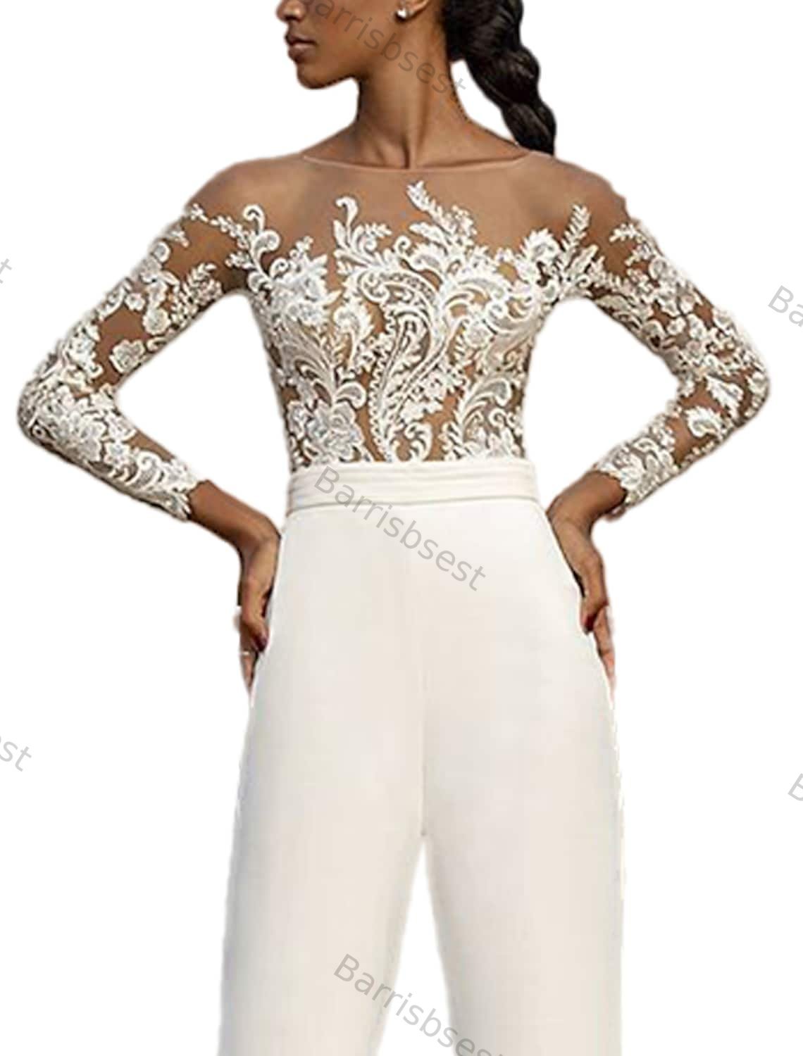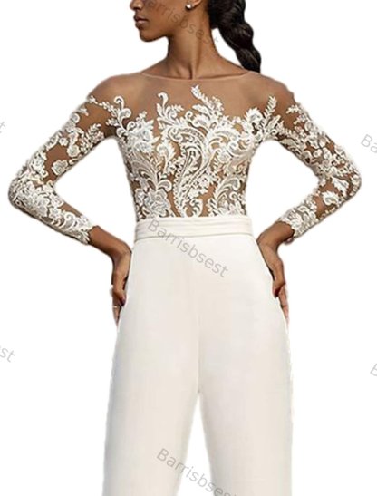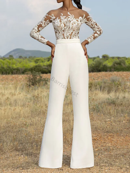 Women's Jumpsuit Embroidered Solid Color Crew Neck Casual Long Sleeve White