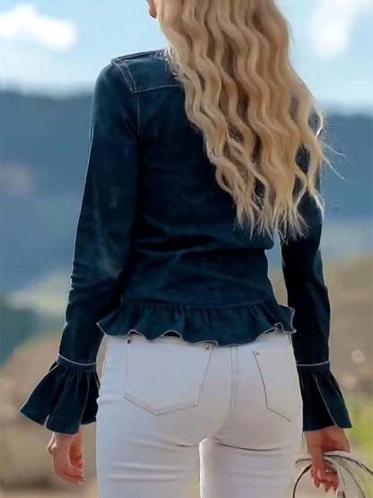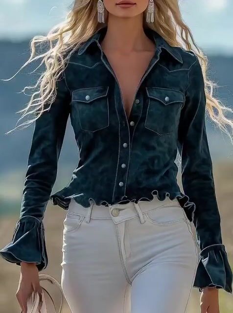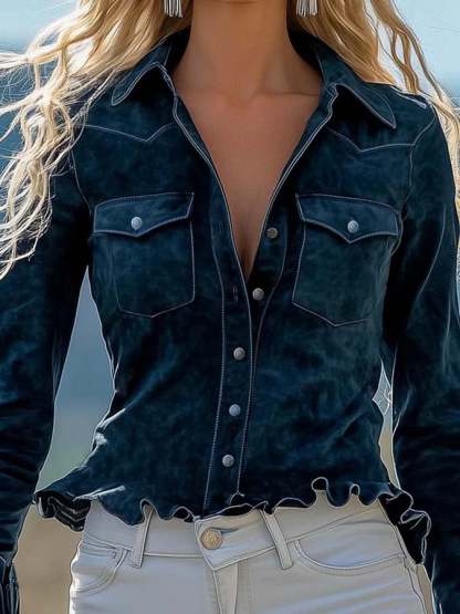 Women'S Slim-Fit Ruffled Long-Sleeved Shirt