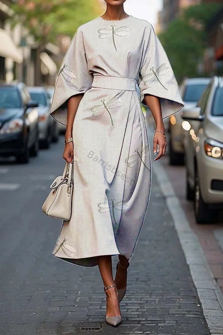 Women's Vintage Elegant Lace Floral Print Midi Dress