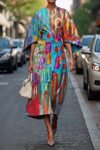 Women's Vintage Elegant Abstract Geometric Print Midi Dress