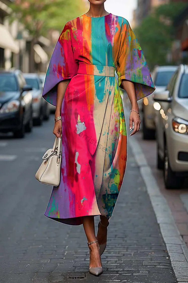 Women's Vintage Elegant Abstract Print Midi Dress
