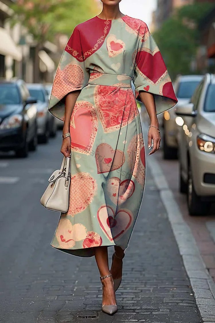 Women's Vintage Elegant Heart Print Midi Dress