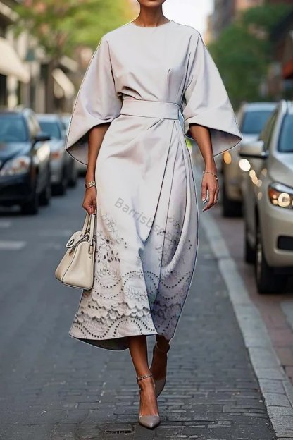 Women's Vintage Elegant Lace Floral Print Midi Dress