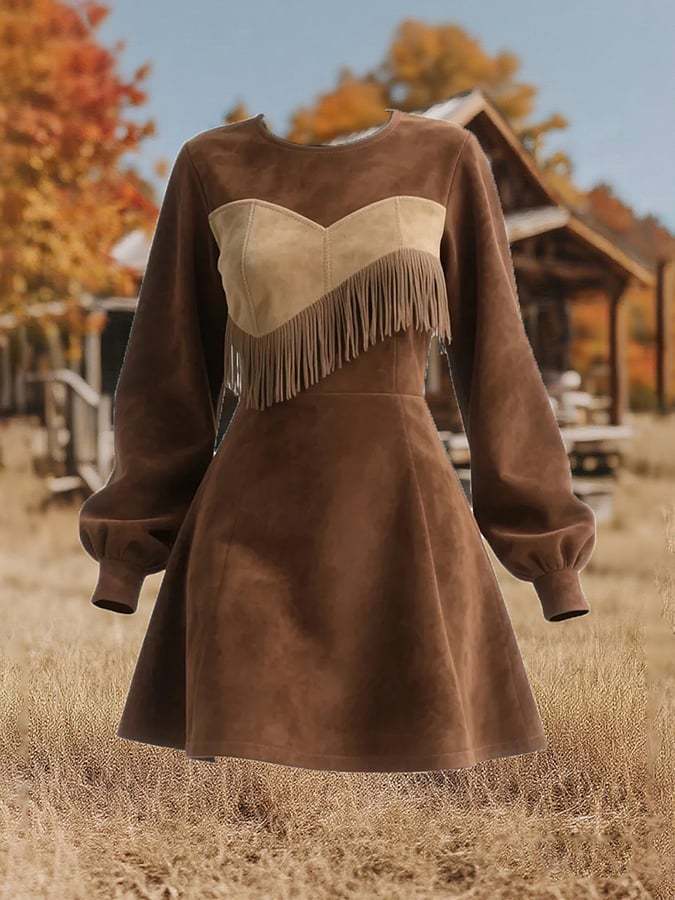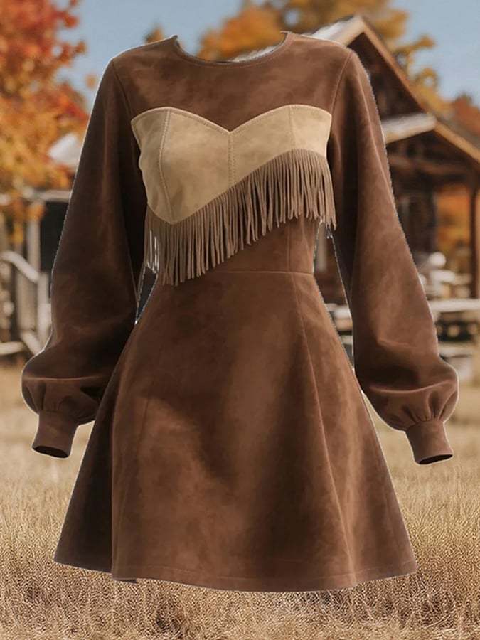 Women's Vintage Round Neck Tassel Dress