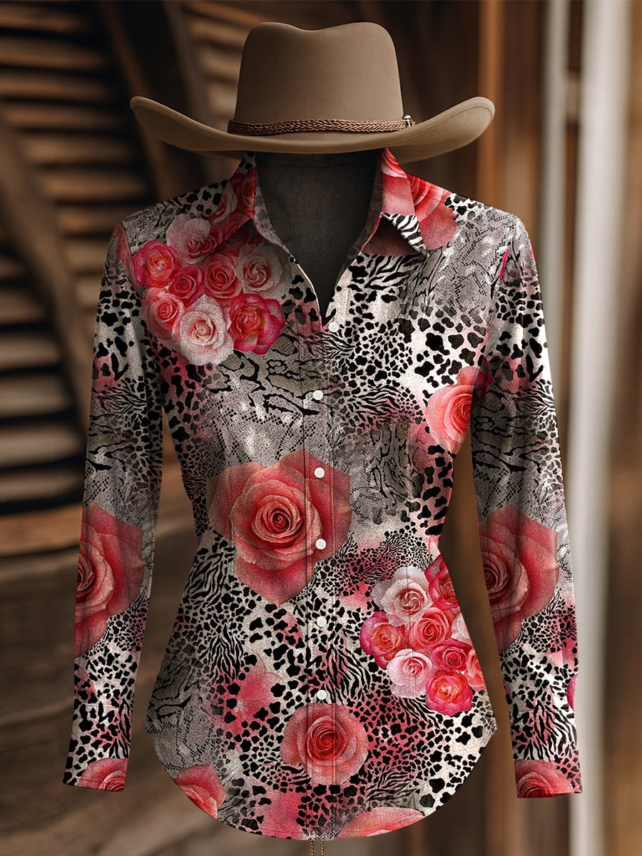 Women's Vintage Snake Floral Print Western Long Sleeve Shirt